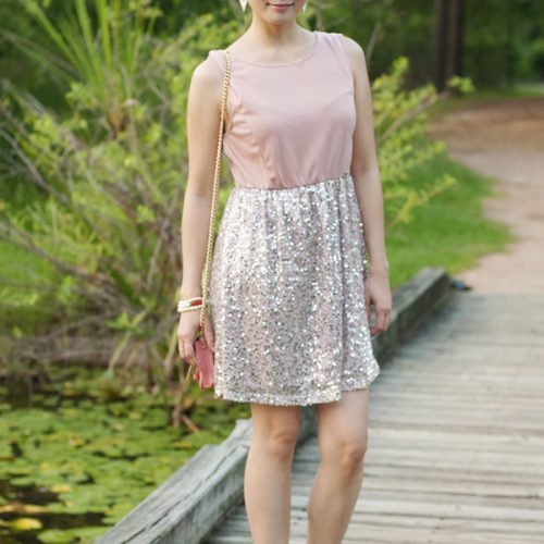 Made of a black and white sequin in a zebra pattern. This dress is fitted princess cut, it is knee length, sleeveless, black and white sequin tunic dress with an invisible black zipper. Lined with black polyester. One thing I can tell you is that the invisible black zipper is NOT easy to make.