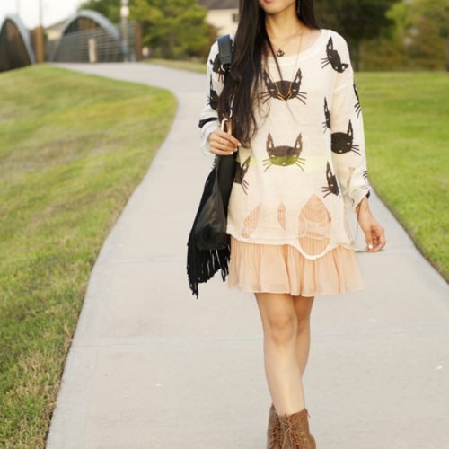 And look what I did with it! Haha…in an attempt to create a sort of “Native American” look. Anyway, we shot this outfit about a couple of weeks ago and I had no intention of posting it till sometime around October. But recently, our temperature here in Texas changed suddenly from being 90+ degrees around 8ish in the morning to 70 degrees which is really awesome! Even though it’s still technically summer and it still gets to 90ish degrees in the afternoons, it just feels more like fall now in the mornings and at nights…soooo yipeeee!