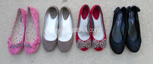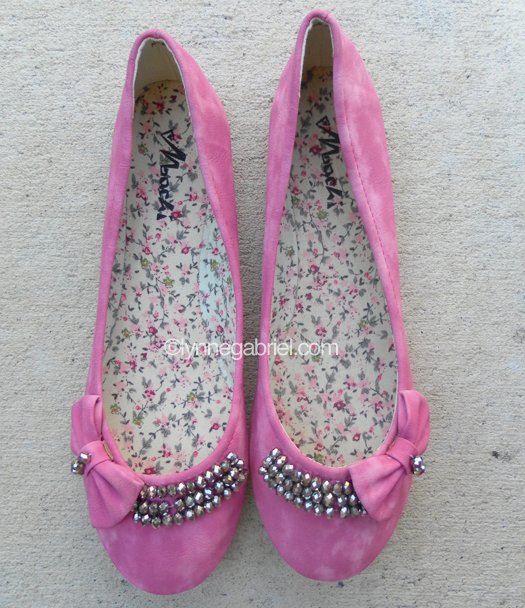 I am definitely a ballet flat girl and I have such a strong affinity to those flats with blings. Below are just some of my collection of ballet flats. Pink bow flats!!! I love love love this pair! I love the velvety texture of it and the bow. A lot of people loved this also and I’ve been asked several times about where I bought them, so here, I’m making it available. Unfortunately, I only have two sizes, 7 and 8. Please put on the comment section what size you want. Price: $34.95 + 5.65 USPS Priority Mail Shipping with delivery confirmation.