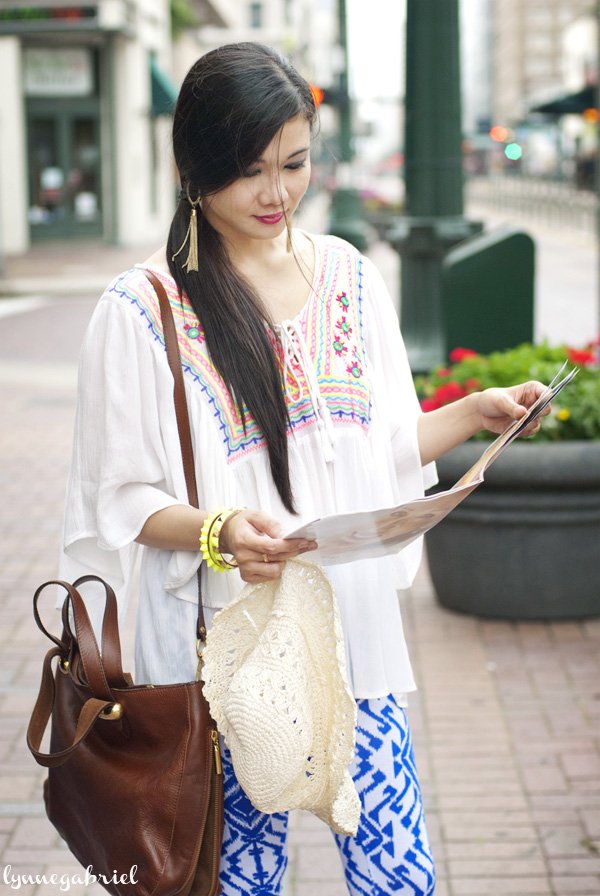 On to the outfit…yesterday I chaneled my festival girl. Today, I’m letting out a bit of the Boho in me. This isn’t the regular Lynne that you will see on the streets but as I’ve said before, I try to be versatile with my style…somehow. Boho is very comfortable and I think that’s why most girls enjoy wearing the look. Throw in a pair of leggings and a peasant top, wear a pair of sandals and you’re good to go! If you want to take it up a notch a bit, you can wear a hat or some kind of floral hair accessories like this Daisy flower crown. Now all these pieces (with the exception of the hat and bag) from this look were from Deb Shops. It’s a very summery style and also great for traveling! Leggings might be a little too hot for Texans come summer so my next boho look would probably be in a maxi skirt. Hmmm….