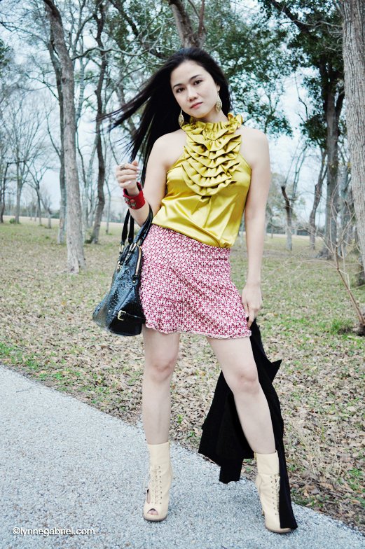 My ruffled satin inner top is from Blacque Label and embroidered skirt is from Guess.