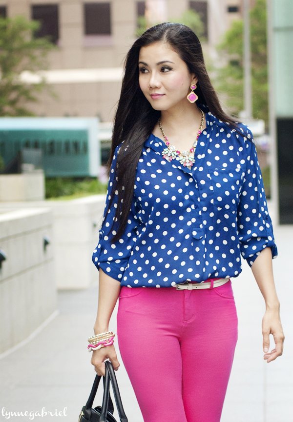 Now you can always tone each of these pieces down by wearing lighter colors. For example, if you're dying to get a hot jeggings in your closet like this and don't particularly like the combination that I put together, you can wear a white or a mint green top. You can even do monochromatic (which is a combination of dark and light colors, say: Hot pink to pink to light pink) if you wish. The polka dot top can be worn with your regular denim or a pair of white leggings. Use them to fit your style. I'm sure as a fashionista, you will find creative ideas to style it. Both pieces are available on Faith, Grace, and Lace's website and the individual links are on the Outfit Recap portion above.