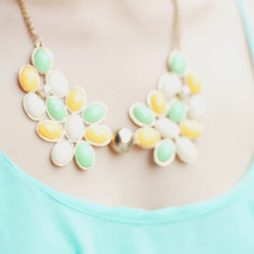 Here's what I picked from the store: A royal blue electric pleated dress and a printed tangerine kimono style overblouse. Since I feel that Fall colors can be quite dull, I chose these festive colors. Besides, the 2012 color is Tangerine Tango! I also got a fur scarf and a tan coat to make it more seasonal. Then I picked a couple of gold necklaces and put them together.