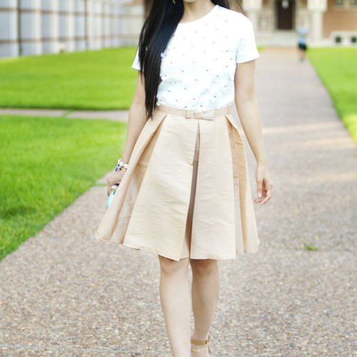 Love, love, love the skirt that you are wearing. The embroidery is simple & delicate – you could wear so much with it. I've always been a fan of nude and black together so this is definitely one that I would rock.