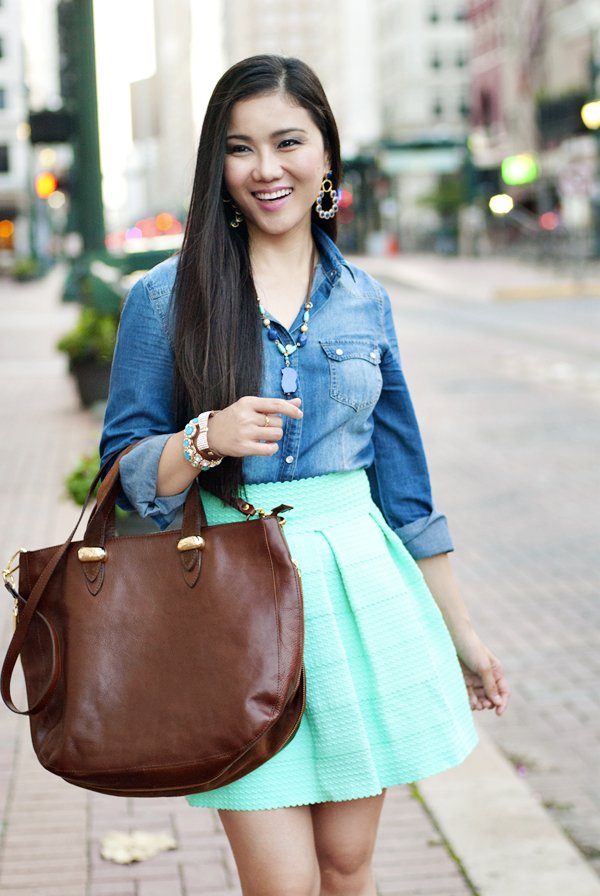 Such a cute outfit!! Love the mint with the chambray