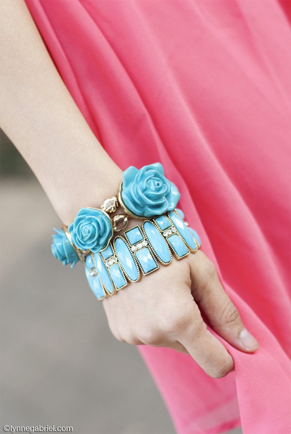 I've decided once again to play with colors and matched this coral pink dress with turquoise wedges from MyHotShoes and some turquoise bracelets. I had a season in my life where turquoise used to be my favorite color. Now, it just varies, haha. This whole outfit probably made you ask: "Is it spring yet?" I know I know, not quite yet. Still 3 more weeks but hey it's definitely just around the corner so you might as well get your spring outfits ready. Woohoo!