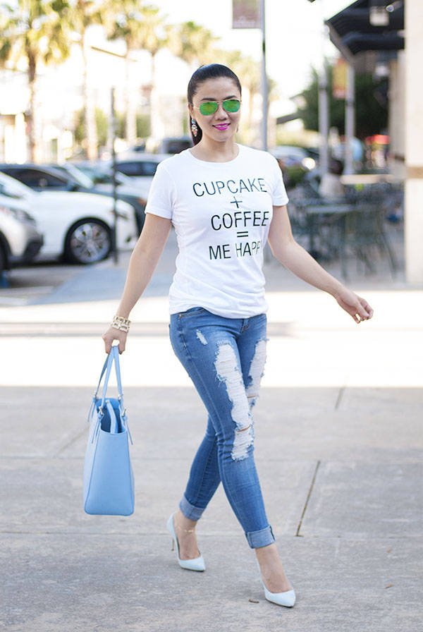 Considering I love coffee AND cupcakes, this shirt is a must. Love the distressed denim, as well!