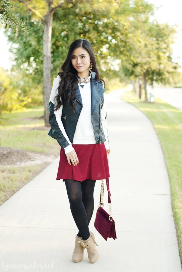 Deb Shops Sweater | Deb Shops Plaid Collared Shirt | Deb Shops Faux Leather Vest | Deb Shops Textured Skater Skirt | DKNY Tights | Deb Shops Suede Booties | Deb Shops Earrings (Similar) | Sperry Topsider Watch | ShoeDazzle Bag (All c/o except tights) . . . . . . . . . . . . . . . . . . . . . . . . ...