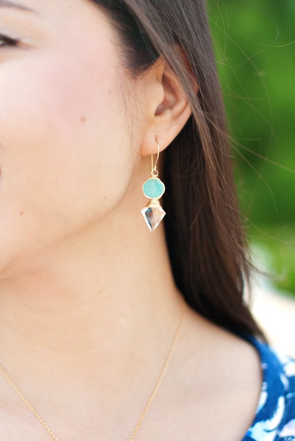 Juicy Couture Palm Trees Top via Kohl's (Similar Here) | Juicy Couture Palm Trees Shorts via Kohl's (Also check out other palm tree shorts below)| Deb Shops Strappy Sandals (Similar Here) | Deb Shops Leather Backpack (Similar Here) | Lauren Conrad Sunglasses via Kohl's | Saressa Designs Druzy Earrings | Saressa Designs Druzy Necklace | Saressa Designs Druzy Bracelets | In addition: Dynamic Asia Fedora (All c/o)