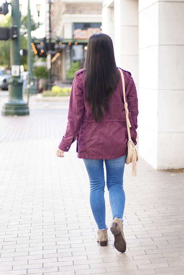 Free People Utility Jacket | BP Stripes Shirt | ASOS Distressed Jeans (Sold Out But Similar Here) | BP Tassel Shoulder Bag | Aerosoles "Mythology" Booties | Kendra Scott "Danielle" Earrings | Nordstrom Choker (All c/o)