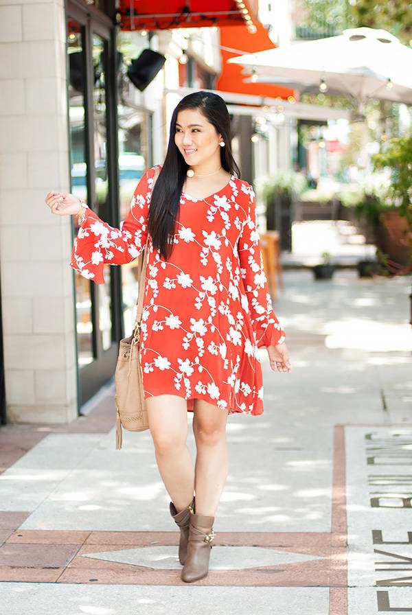 Anyway, this floral crepe dress is only $39.99 and shipping is free if you have Prime. It's worth every penny! I love the flow, the material, the style…everything about it! The embroidered floral details are beautiful! It does look red in the pictures but it's actually burnt orange and looks gorgeous in person. Ladies, you will fall in love with dress, I promise you that!