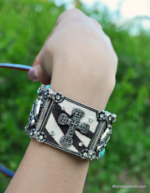 Turquoise bracelet with cross.